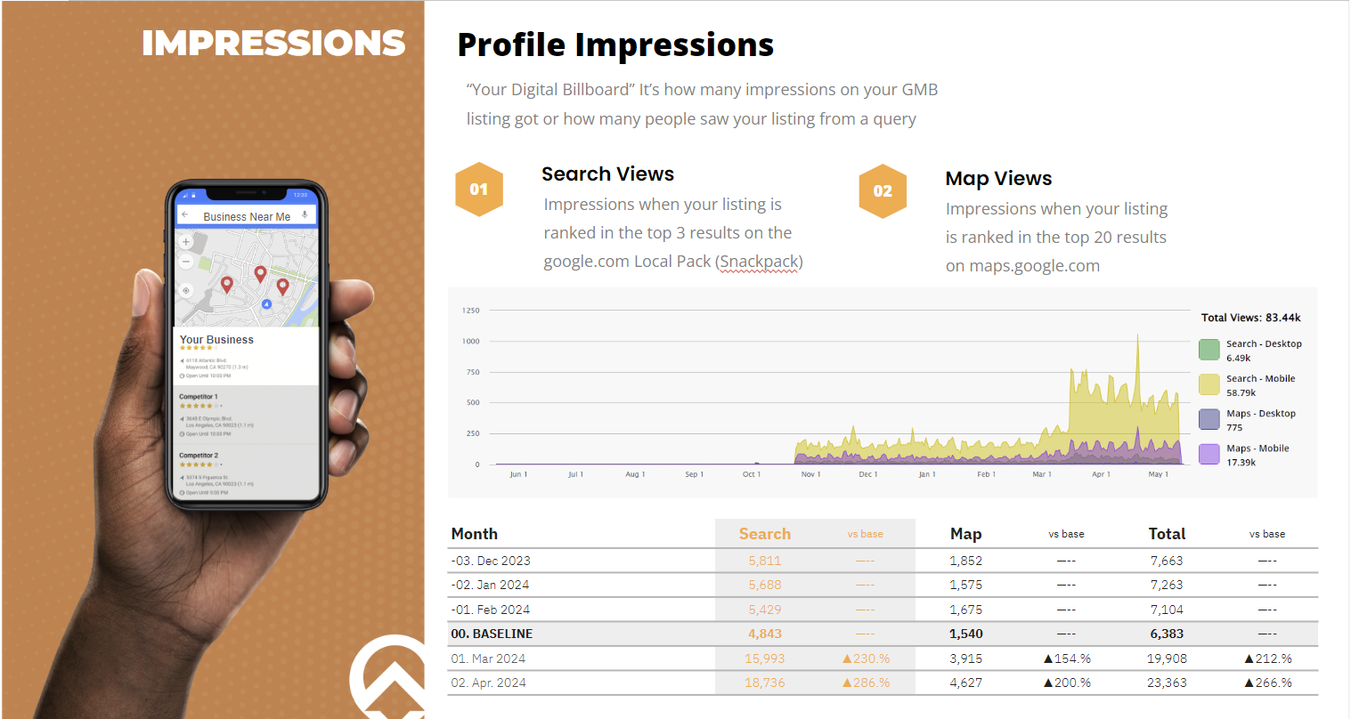 We take all of your online business profiles (Google, Yelp, Bing, Yahoo, Apple Maps, etc) and we optimize them for what your ideal customers are searching for. Then, we create thousands of profiles on other directory sites that you (and your competition) are missing so that you gain that extra edge.